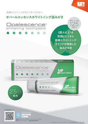 ホワイトニング歯みがき世界125か国以上で販売され、医療ホワイトニングのゴールドスタンダードともいえる「オパールエッセンス」から、ホワイトニング患者向けに開発された歯みがき粉。研磨剤フリーで歯にやさしく、ベントナイトと無水ケイ酸をバランスよく配合し、ステインを浮かせてやさしく除去。